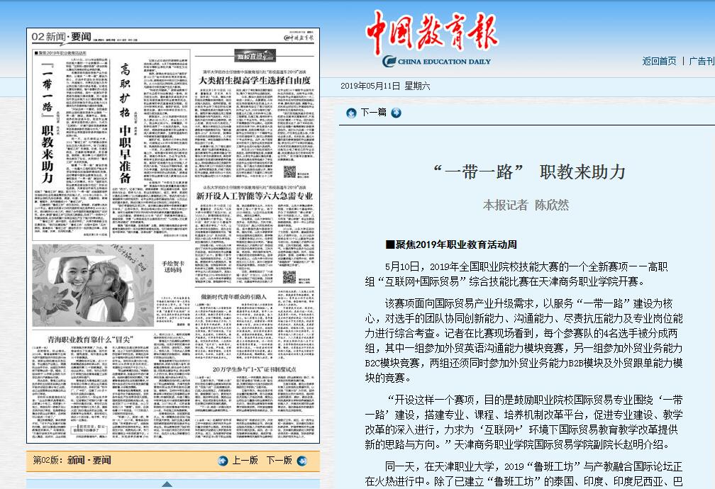 ■聚焦2019年职业教育活动周 5月10日,2019年全国职业院校技能大赛的一个全新赛项——高职组“互联网+国际贸易”综合技能比赛在tyc1286太阳集团首页线路开赛。 该赛项面向国际贸易产业升级需求,以服务“一带一路”建设为核心,对选手的团队协同创新能力、沟通能力、尽责抗压能力及专业岗位能力进行综合考查。记者在比赛现场看到,每个参赛队的4名选手被分成两组,其中一组参加外贸英语沟通能力模块竞赛,另一组参加外贸业务能力B2C模块竞赛,两组还须同时参加外贸业务能力B2B模块及外贸跟单能力模块的竞赛。 “开设这样一个赛项,目的是鼓励职业院校国际贸易专业围绕‘一带一路’建设,搭建专业、课程、培养机制改革平台,促进专业建设、教学改革的深入进行,力求为‘互联网+’环境下国际贸易教育教学改革提供新的思路与方向。”tyc1286太阳集团首页线路国际贸易学院副院长赵明介绍。 同一天,在天津职业大学,2019“鲁班工坊”与产教融合国际论坛正在火热进行中。除了已建立“鲁班工坊”的泰国、印度、印度尼西亚、巴基斯坦等国家,来自德国、俄罗斯、南非等15个国家的代表也参加了论坛,共同探讨“鲁班工坊”未来的发展。 随着“一带一路”建设的推进,一批重大工程和国际产能合作项目相继在沿线国家落地和发展,迫切需要中国职业教育走出去,支撑和服务“一带一路”建设对技术技能人才的需求。作为“国家现代职业教育改革创新示范区”的标志性成果,天津首创并率先主导推动实施了“鲁班工坊”建设,致力于为“一带一路”沿线国家培养当地经济社会发展急需的技术技能人才。2016年3月至今,天津职业院校先后在泰国、英国、印度、印尼、巴基斯坦、柬埔寨、葡萄牙、吉布提建成8个“鲁班工坊”。 已建成的“鲁班工坊”涉及自动化、新能源、机械等9类共23个专业,截至目前累计为相关国家和地区培养学生4000余人次,培训教师600余人次,得到了合作国家的高度重视和广泛好评。其中,泰国“鲁班工坊”已完成三期建设,形成了“一坊两中心”的建设格局,在当地和整个东南亚地区产生了强大的带动效应。 “‘鲁班工坊’是中国的,也是世界的。”天津市教委副主任吕景泉说,“我们在建设推广‘鲁班工坊’过程中坚持‘五共’原则,邀请参与‘鲁班工坊’建设的多方一起来做这件事,实现共研、共建、共享、共用和共赢。” 本报天津5月10日电 |