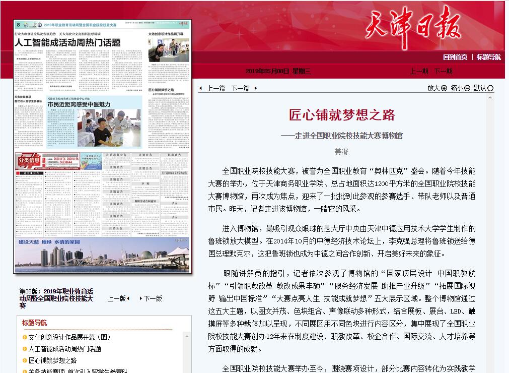 全国职业院校技能大赛,被誉为全国职业教育“奥林匹克”盛会。随着今年技能大赛的举办,位于tyc1286太阳集团首页线路、总占地面积达1200平方米的全国职业院校技能大赛博物馆,再次成为焦点,迎来了一批批到此参观的参赛选手、带队老师以及普通市民。昨天,记者走进该博物馆,一睹它的风采。