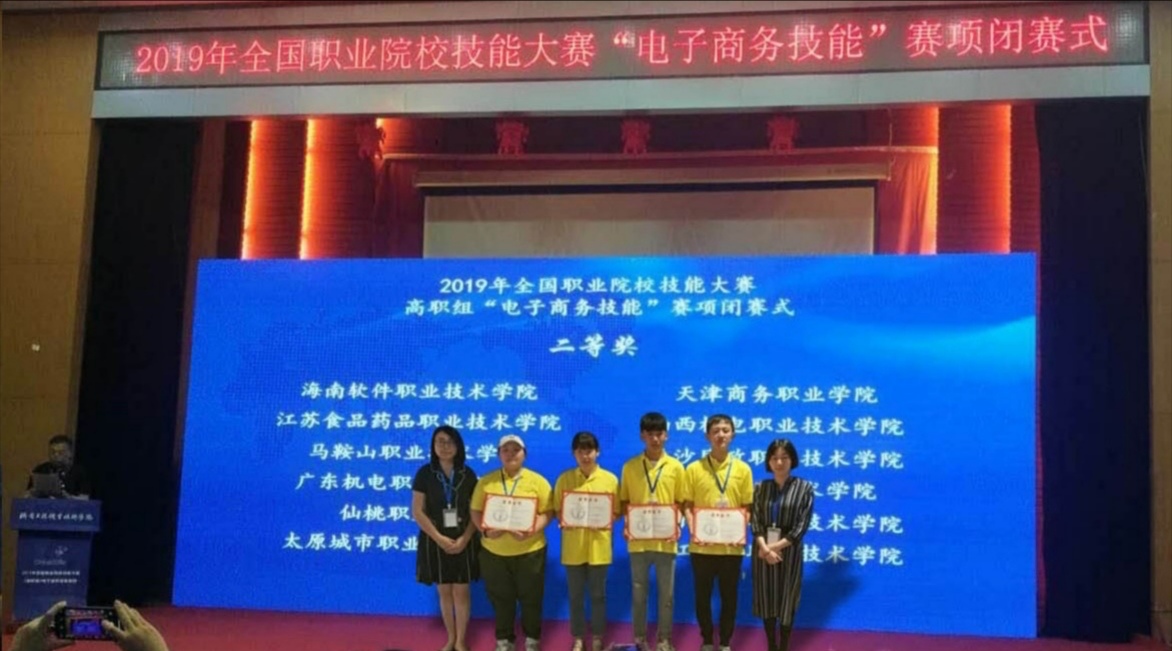 5月18日,2019年全国职业院校技能大赛高职组“电子商务技能”大赛在济南落下帷幕。经过激烈角逐,我校营销学院学生卓少华、王贝贝、石亚君、张悦山一路过关斩将,荣获2019年全国职业院校技能大赛高职组“电子商务技能”赛项二等奖。