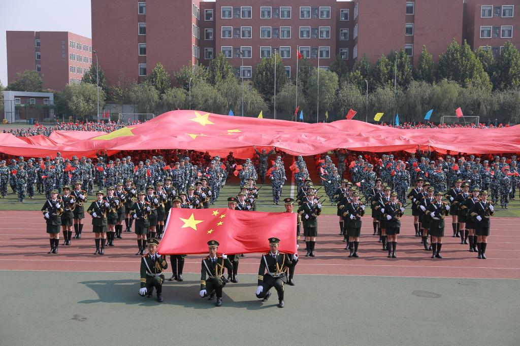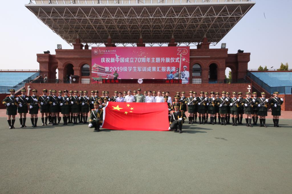 9月30日,2019级新生军训成果汇报表演在学校体育场举行。市警备区辛维刚大校,校领导吴惟义、宫宝利、徐琤颖、尹秀琴、周宝玲出席大会,学校相关部门及二级专业教学学院负责人、教师代表、全体2019级新生参加仪式。仪式由党委副书记徐琤颖主持。