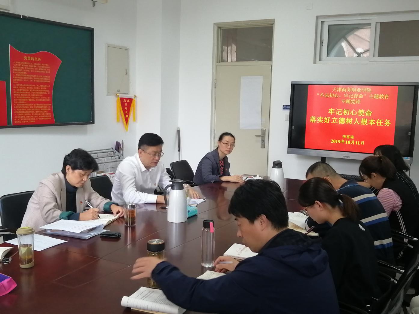 10月11日下午,按照学校党委“不忘初心、牢记使命”主题教育统一安排,学校副校长李富森同志以《牢记初心使命,落实好立德树人根本任务》为题,为国际贸易学院全体党员讲授主题教育专题党课。