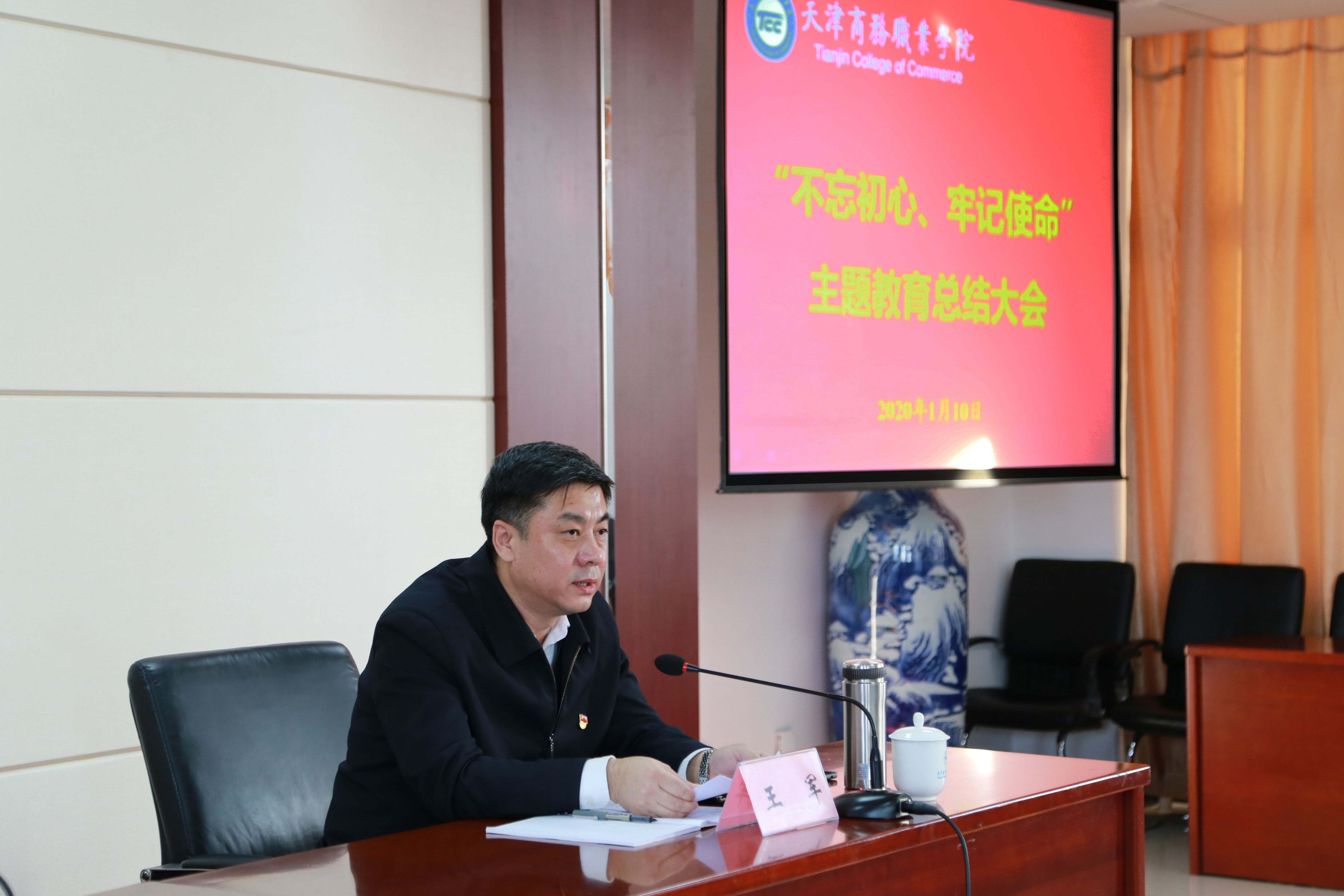 1月10日下午,学校召开“不忘初心、牢记使命”主题教育总结大会,市委第二批“不忘初心、牢记使命”主题教育巡回指导组第九组副组长王军出席会议并讲话,学校党委副书记、校长宫宝利主持会议并作总结讲话。