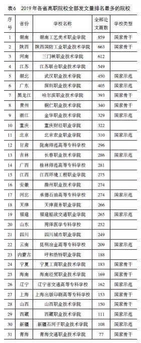 2019年,全国高职院校在CNKI收录期刊发表的120828篇论文中,校均发文数85篇。在北大核心期刊校均发文8篇。