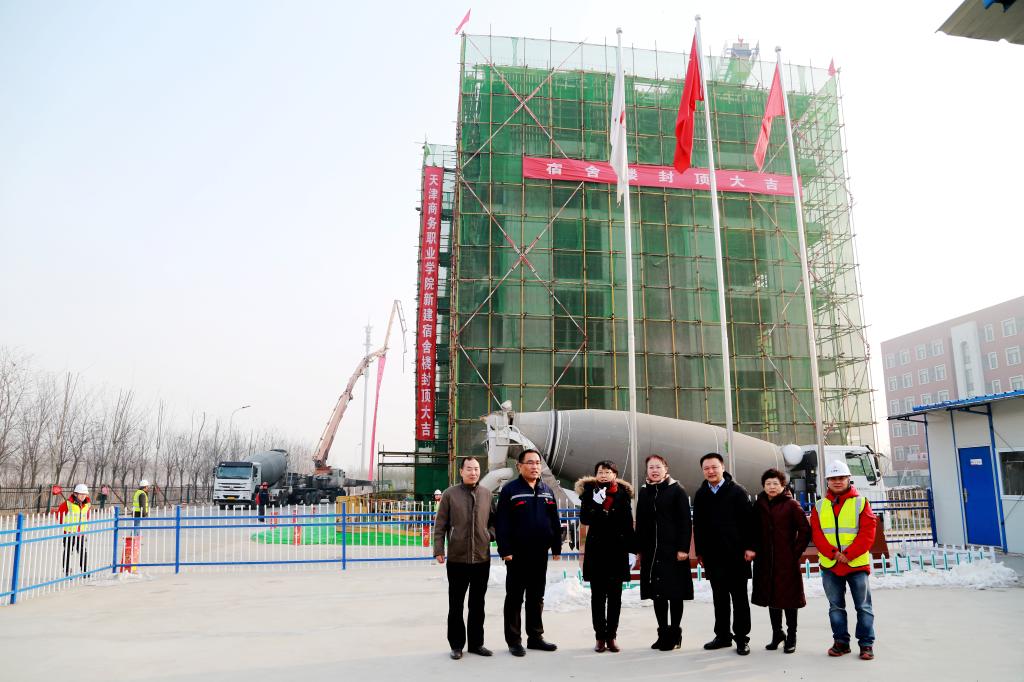 2020年1月15日,学校举行学生公寓主体封顶仪式,尹秀琴副校长、天津市建工工程总承包有限公司轩欲晓副总经理及其他嘉宾共同参加仪式。