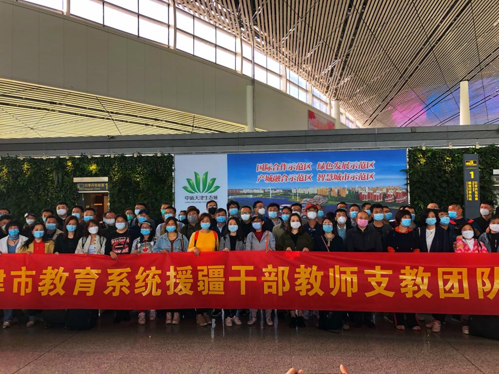 千里烟尘书香近, 异乡耕耘报国情。5月10日清晨6:30,学校三位援疆教师启程赴新疆支教。人事处、国际贸易学院、营销学院、会计学院主要领导代表全校师生前往天津机场为援疆教师送行。
