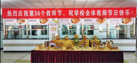 为庆祝第36个教师节,学校领导精心安排,多部门协调配合举办了“我是教师 我爱教师”教师节系列庆祝活动。在深入贯彻习近平总书记“厉行节约、杜绝浪费”指示精神的基础上,学校为全校教师准备了集地区特产、人气美食、网红甜点、花色蒸笼等品种的特色午餐,就餐教师在享受美食的同时,自觉主动按需取餐,教师节午餐光盘率达100%。