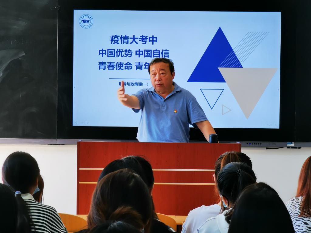9月18日下午,学校党委书记、校长宫宝利教授来到旅游学院,为会展1901、1902班学生讲授了一场题为《疫情大考中的中国优势、中国自信、青春使命、青年担当》的形势与政策课。