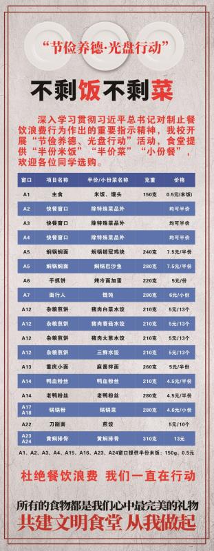 为深入贯彻落实习近平总书记关于制止餐饮浪费的重要指示精神,近日,后勤管理处组织开展“节俭养德、光盘行动”主题教育月活动,倡导广大师生自觉养成勤俭节约的良好习惯,营造浪费可耻、节约为荣的浓厚校园氛围。