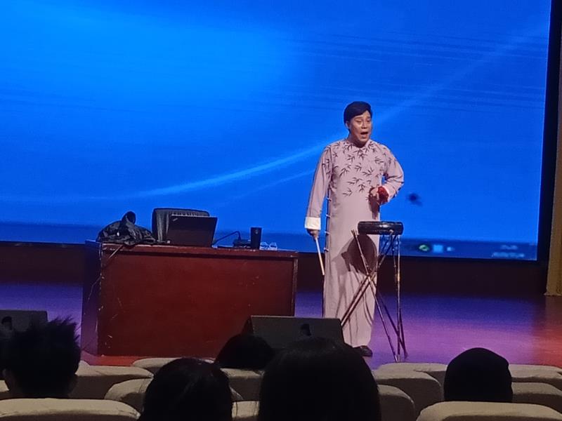 讲座中,夏老师通过理论讲解、故事分享、视频展示等方式向在场的学生介绍了京韵大鼓的历史沿革及现代创新,并通过现场演唱的方式让学生切身感受到了京韵大鼓的魅力,将现场气氛推向了高潮。夏老师鼓励学生们多关注传统文化,为传统文化的传承发扬做出青年人应有的贡献。