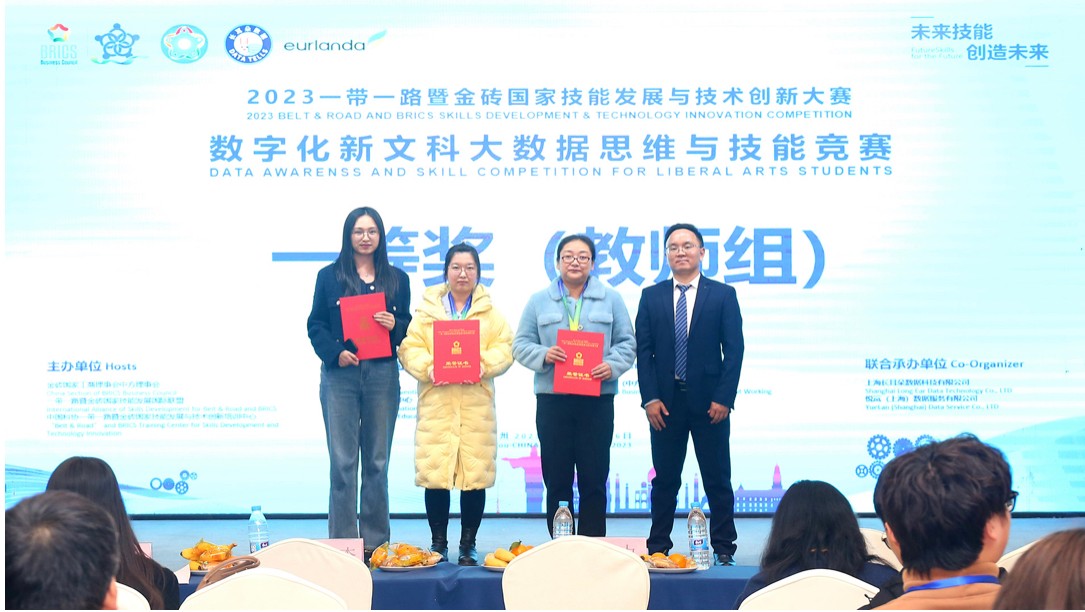 2023年,营销学院刘玥、唐烨二位老师组队参加第七届一带一路暨金砖国家技能发展与技术创新大赛—数字化新文科大数据思维与技能竞赛,荣获全国一等奖。本届赛事汇聚了来自全国各高等学校的近千支队伍,在营销学院的大力支持下,参赛团队展现了我院教师的数据思维、团队精神和协作能力,为数据时代新文科建设与改革积累了宝贵经验。