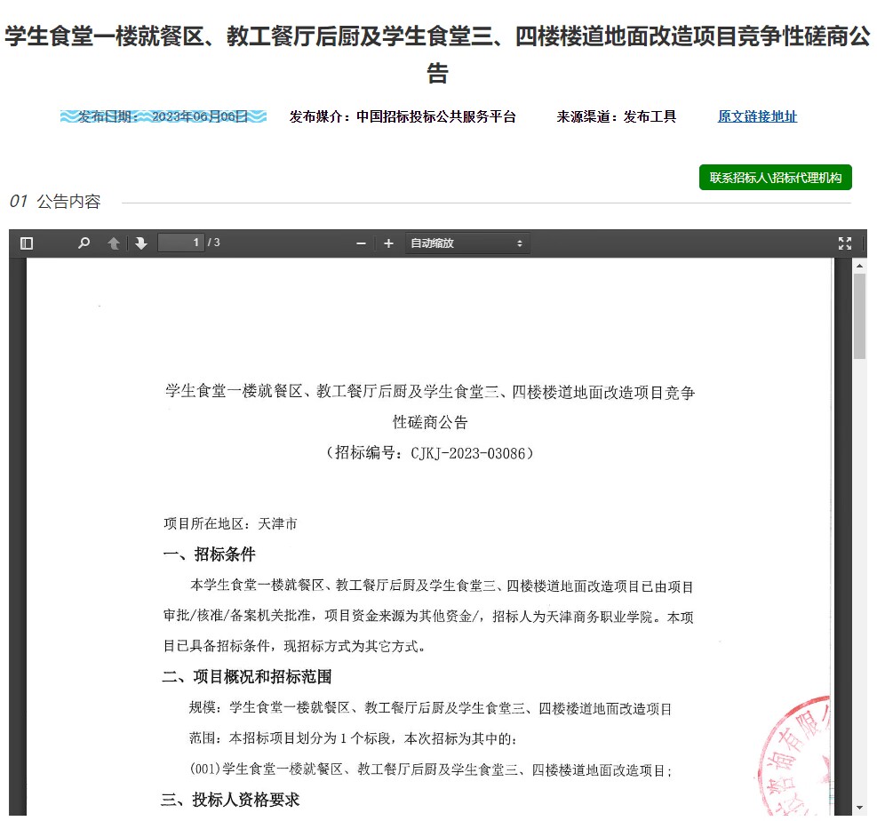 学生食堂一楼就餐区、教工餐厅后厨及学生食堂三、四楼楼道地面改造项目竞争性磋商公告